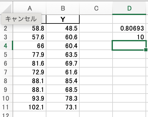 散布図はできましたが、なんだかタイトルが変なので、「Y」というタイトルをダブルクリックして「相関」にしてしまいましょう。