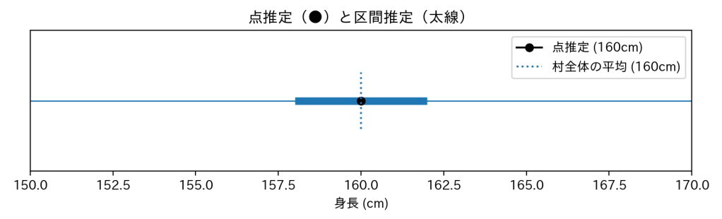 - 区間推定 : 「158〜162cmの間にあるはず」